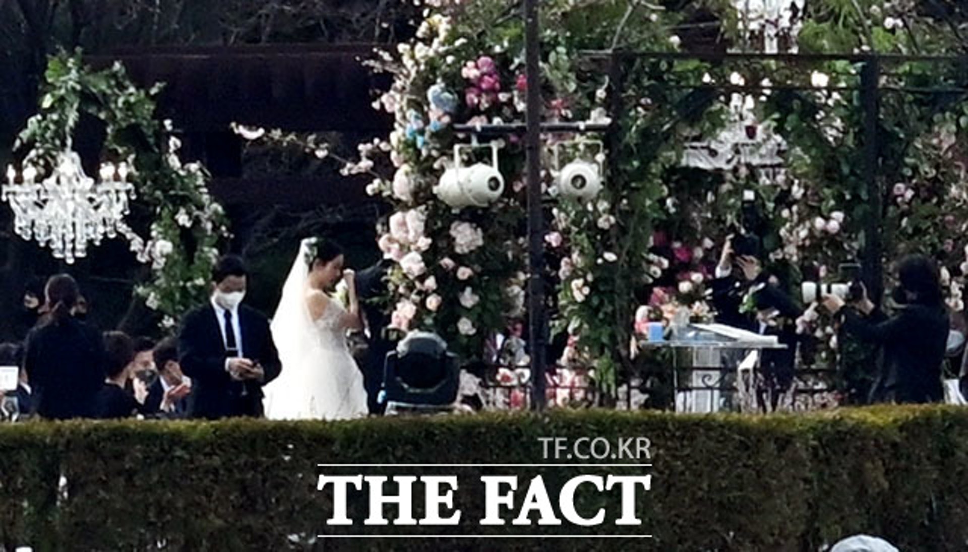 婚禮嚴密程度,讓一眾韓媒只能呆在門口拍攝,或只能靠賓客 IG 透露。由於華克山莊酒店室外場地正對著漢江,因此出動空拍機拍攝一對新人。不除有媒體跑到對面岸拍攝😂