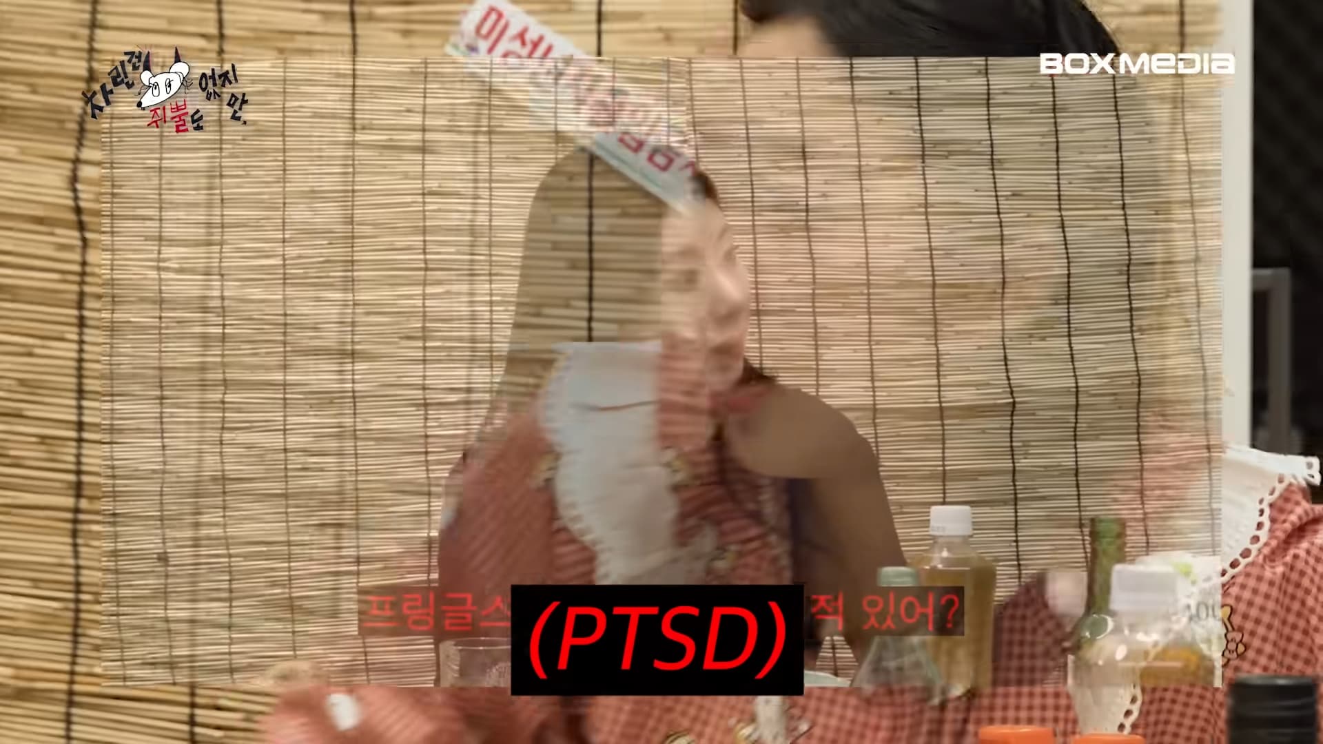 當聊起食量話題時,李泳知腦中閃過彩領問「你有吃過一整罐品客」,忽然間 PTSD 發作想起痛苦記億。