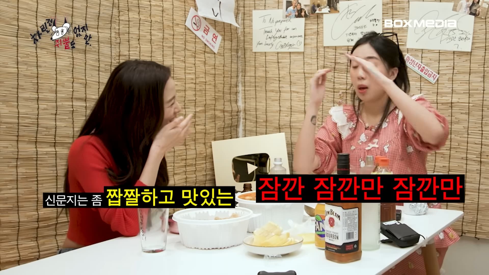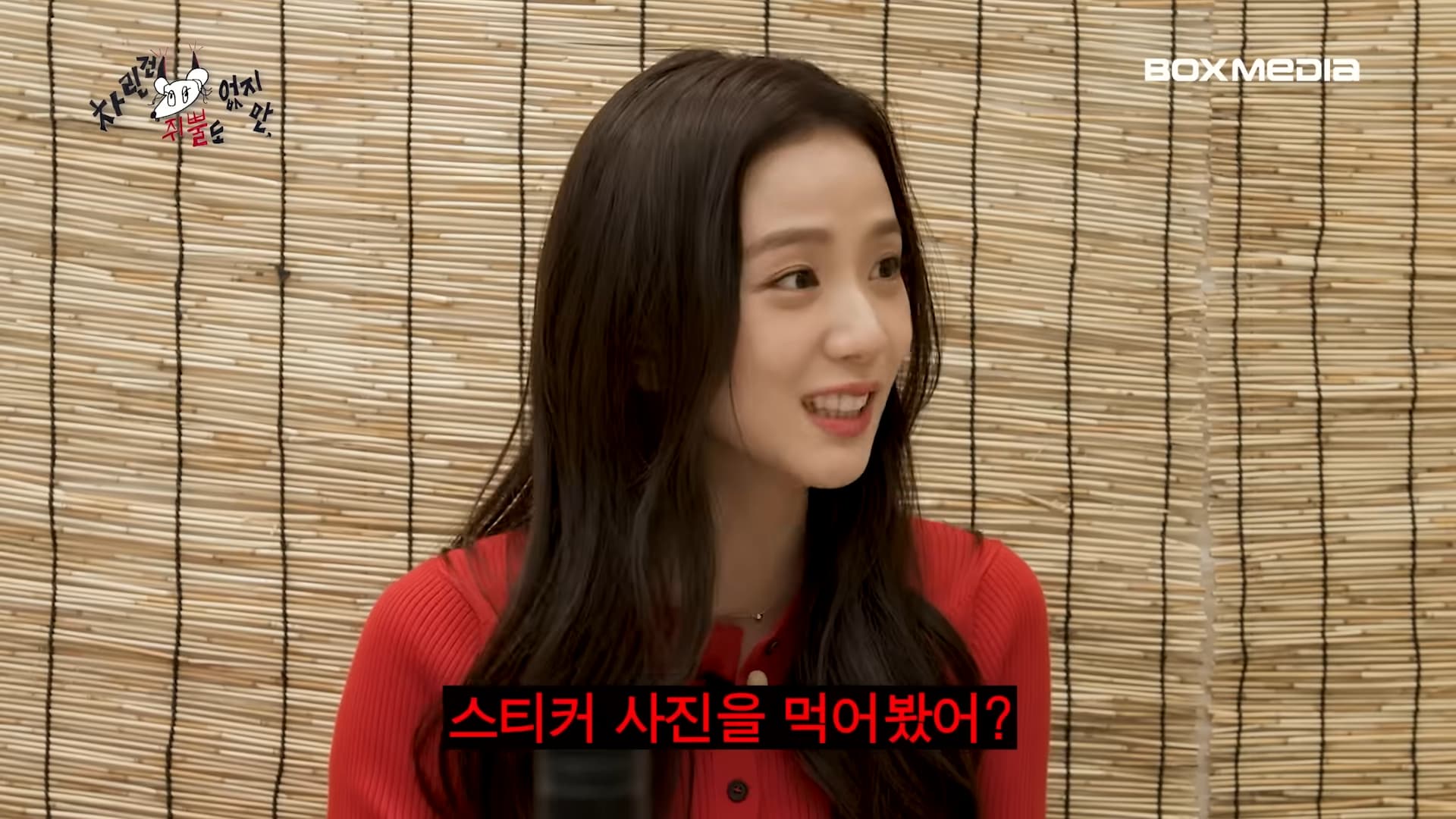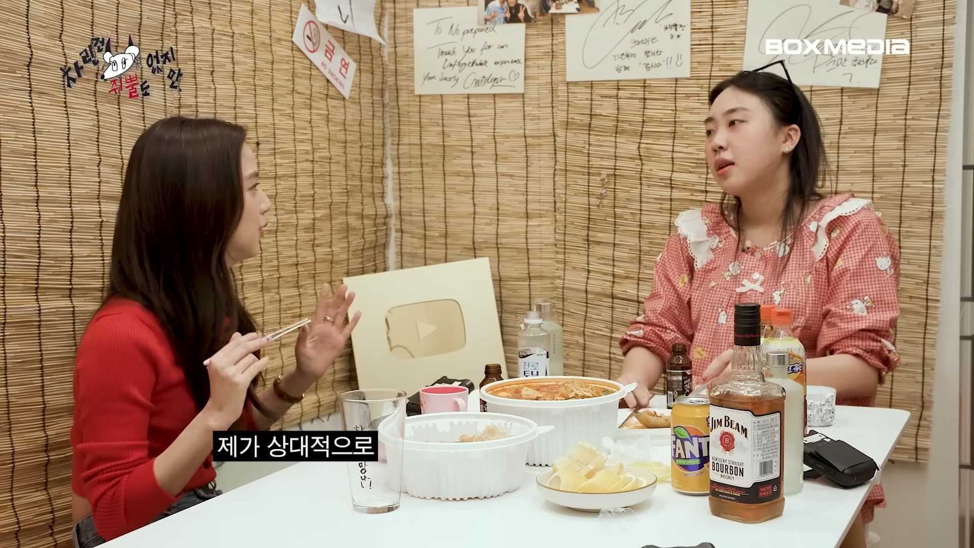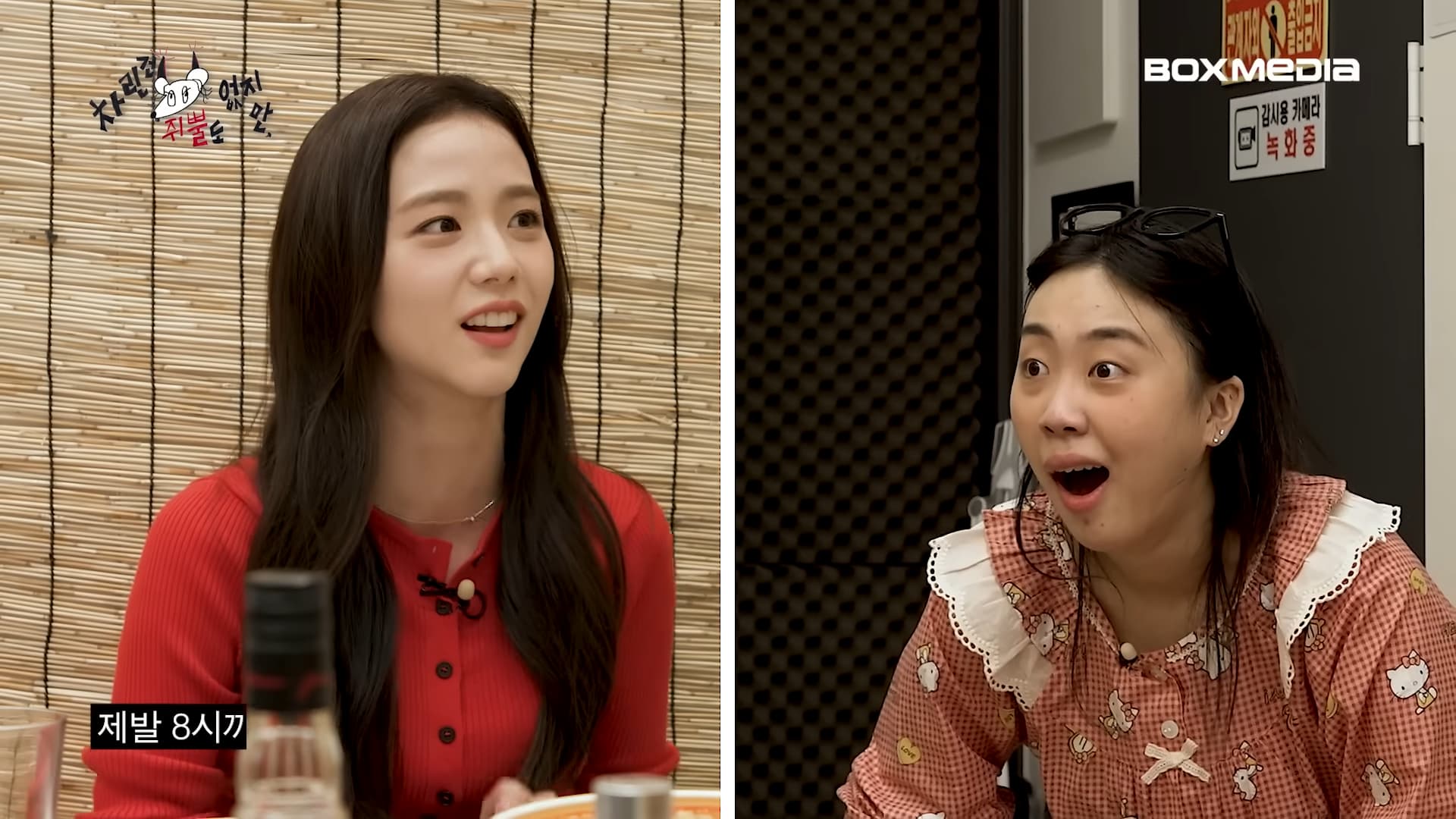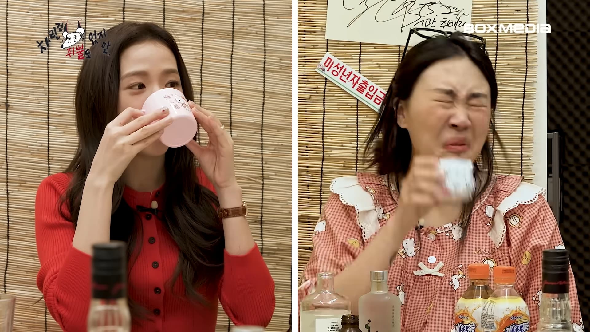 開始前,李泳知先讓 JISOO 嚐嚐松子酒,表示喝起來有「大頭貼」的味道,JISOO 聽到後驚訝問「你吃過大頭貼?!」。