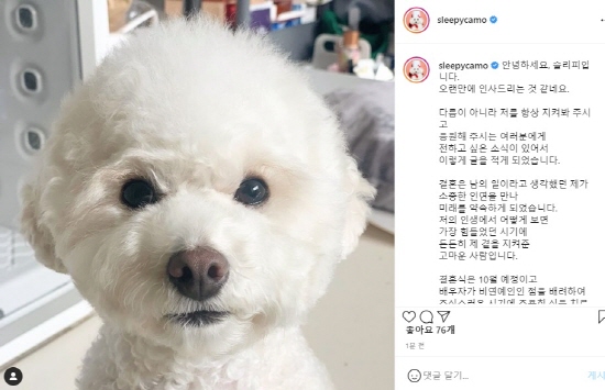 Sleepy 說:「我一直認爲結婚是別人的事情,這次我遇到了珍貴的緣分,並約定了未來」,「在我人生中最艱難的時期,她一直守護在我身邊,是值得感謝的人」。