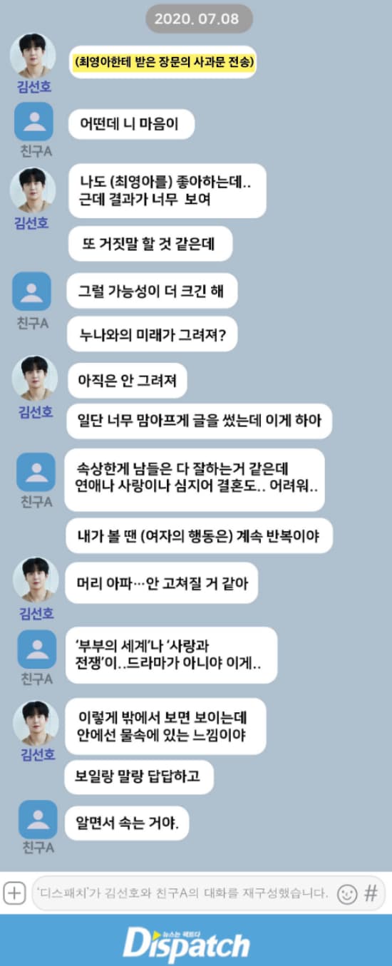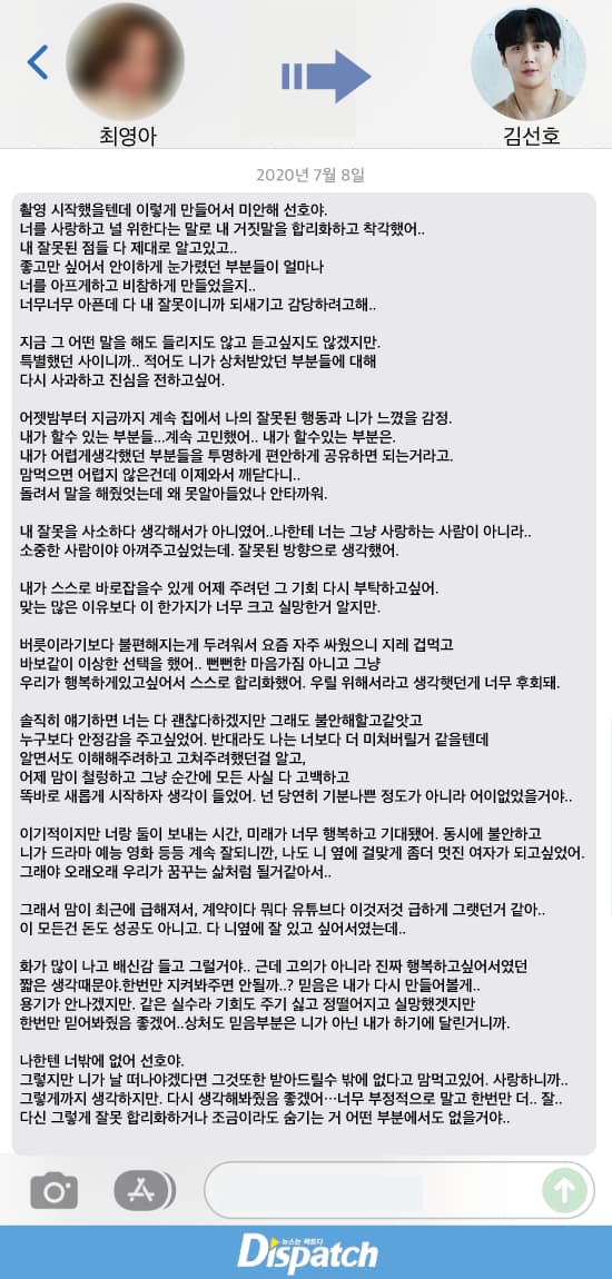 崔英雅,你還記得 2020 年 7 月 8 日嗎?③ 我們找到了你發來的長篇道歉信。(來源是金宣虎友人 A)