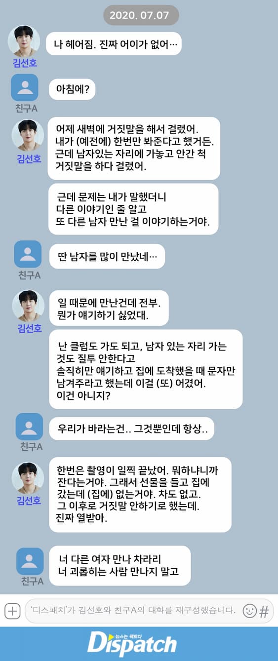 金宣虎跟朋友關於這個問題討論過。下面,相關 KakaoTalk 對話。