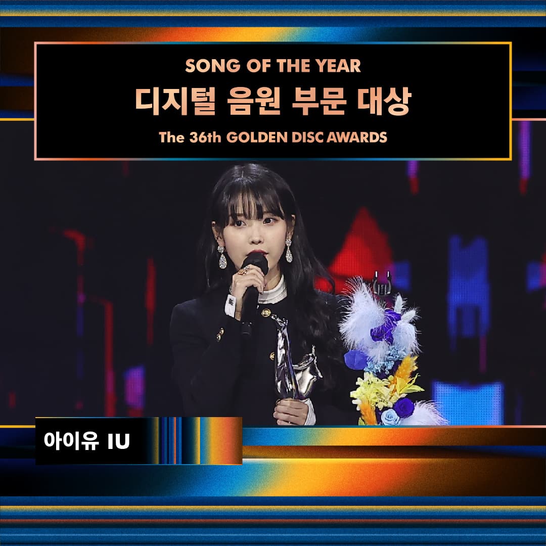 在週六舉行的第 36 屆《金唱片》頒獎典禮上,歌手 IU 當日奪得音源大賞,在專輯部門和音源部門都獲得了本賞。這是 IU 自 2008 年出道以來首次在該頒獎典禮上獲得專輯部門本賞。