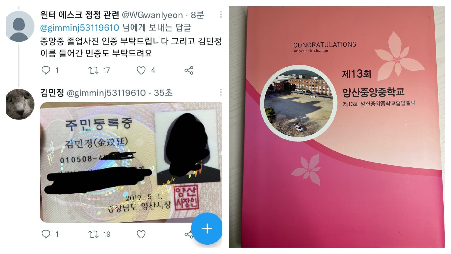 該名同名同姓當事者表示,「自己畢業於梁山中央中學,雖然同是 2001 年出生,但和 Winter 不認識」。同時,她還公開了自己的畢業相冊和身份證以證身份,並訴說自己的委屈。