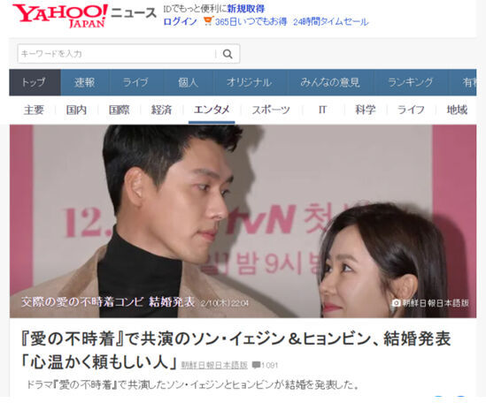 隨着兩人結婚受到熱烈關注,日本 Twitter 實時趨勢第一位還出現了「愛的迫降」,日本網友紛紛表示「電視劇中的愛情變成了現實」、「俊男美女的相遇」、「 好期待小孩啊」等,反應熱烈。