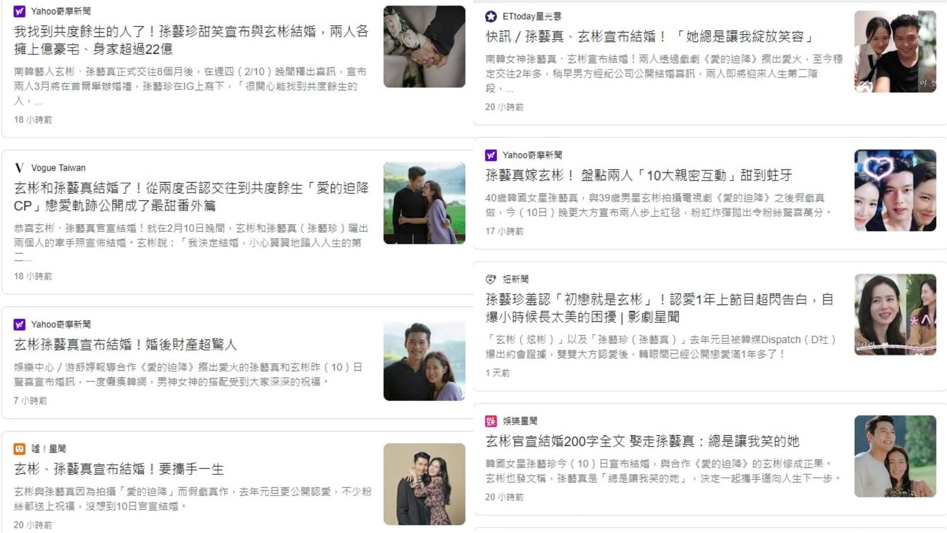 玄彬和孫藝真交往兩年多後,就在昨晚(10日)宣布結婚消息,瞬間成為熱門話題!不單單是在韓國,日本、中國、越南、台灣、印度、巴西等亞洲、南美等國家也陸續報道了婚訊。