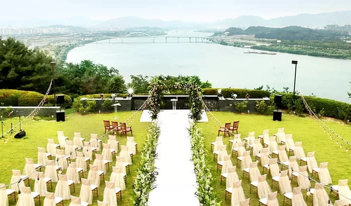 兩人舉行婚禮的 Aston House 座落峨嵯山,是能夠一覽無遺飽覽整個漢江的地方,並且完全禁止外人出入,所以明星們非常喜歡作為非公開婚禮場所。