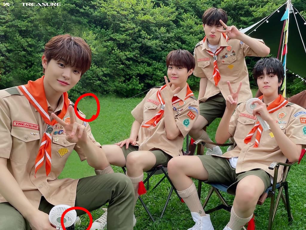 TREASURE 本是十二人組合,但公開的花絮照中只能看見十個成員的身影,獨缺此前宣布暫停活動的方藝潭和 Mashiho,甚至有眼尖的粉絲在其中一張圖的左下方發現詭異的鞋子,看起來像是工作人員 P 圖沒有處理徹底。