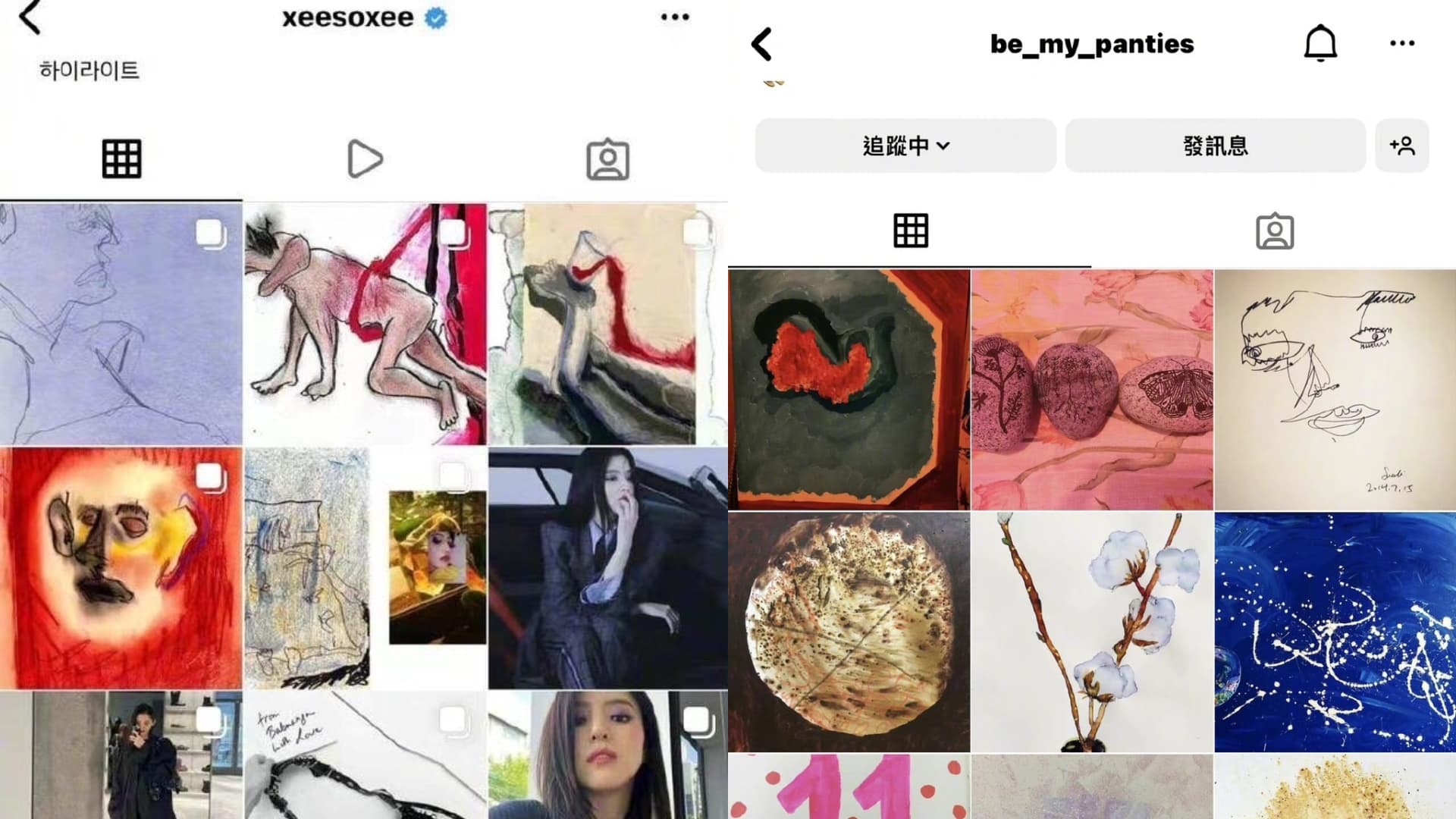 不過,在韓韶禧報平安後數日開始,她的 IG 畫風突變,接連 PO 出多個令人感到毛骨悚然的畫作貼文,也未有附帶任何字句解釋,不少人都表示看到很不舒服。一系列看似藝術卻讓人聯想到性奴的藝術畫。其中一組為一個女生躺在床上,緊接著是一個人的畫像,詭異地張開嘴巴正在接著某種液體。而再往後滑還可以看見一個躺著的人,下方有一對男女在親吻。