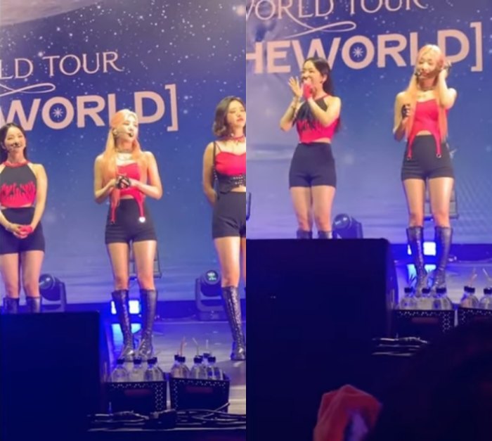 事源在香港藉成員 ViVi 發表感想後,緊接著輪到 Kim Lip 說話。然而,當她開口時,台下觀衆突然開始高喊 ViVi 的名字,還有人突然發出狗叫聲。