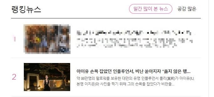 台灣網紅莫莉為緊抓 IU 手爭議道歉,事件也引來韓媒以「台灣網紅」、「不禮貌」、「震驚,未經允許身體接觸」等為標題報導,更曾一度成為登上韓娛新聞排行熱門。