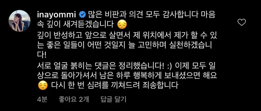 李娜妍當天晚上也補充,看完評論之後會對事件深刻反省。