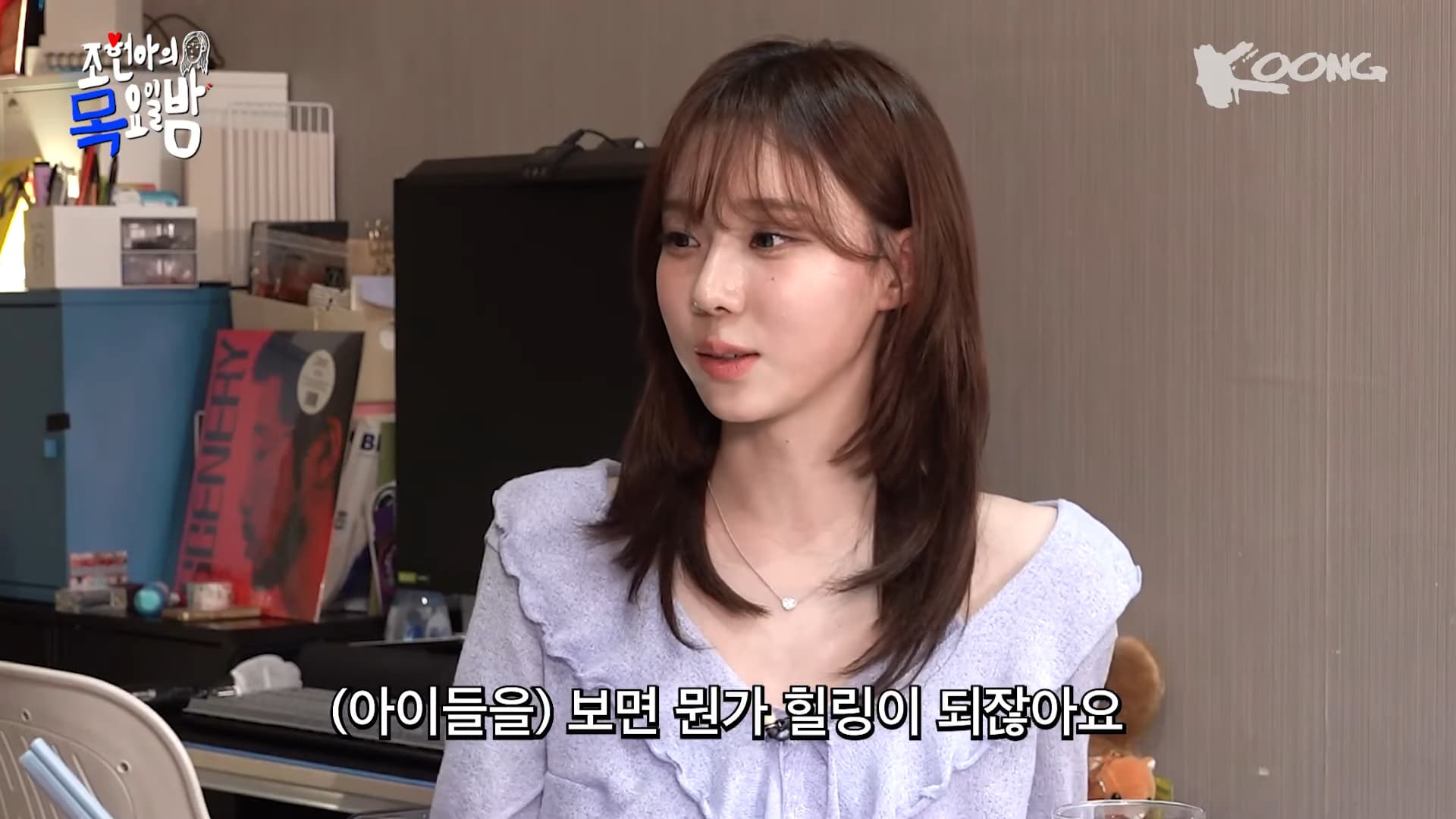 被問到「家裏有做音樂的人嗎?」Winter 表示,「一個都沒有,是軍人家庭。因爲是軍人家庭,所以也想過要不要當軍人,但是我真的很喜歡唱歌」,說明成爲歌手的契機。接着,對於學生時代的夢想,她說:「我想做社會服務,也想當小學老師,看到孩子們就覺得很治癒」。