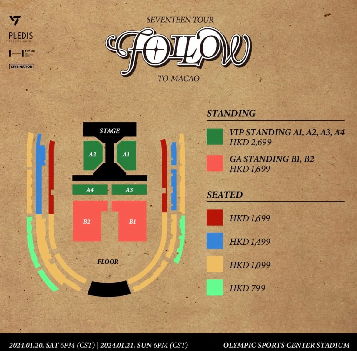 SEVENTEEN 這次選擇位於澳門離島的「奧林匹克體育中心」,主場館觀眾席最高能容納 16,000 觀眾(未計算內場,預計兩場合共四萬人參與),相信目的是為了讓更多粉絲看到演唱會,主辦方也貼心在毗鄰中國的兩個出入境關口,安排巴士接送中國粉絲直達場館。(據悉,已有粉絲在場館外等待)
