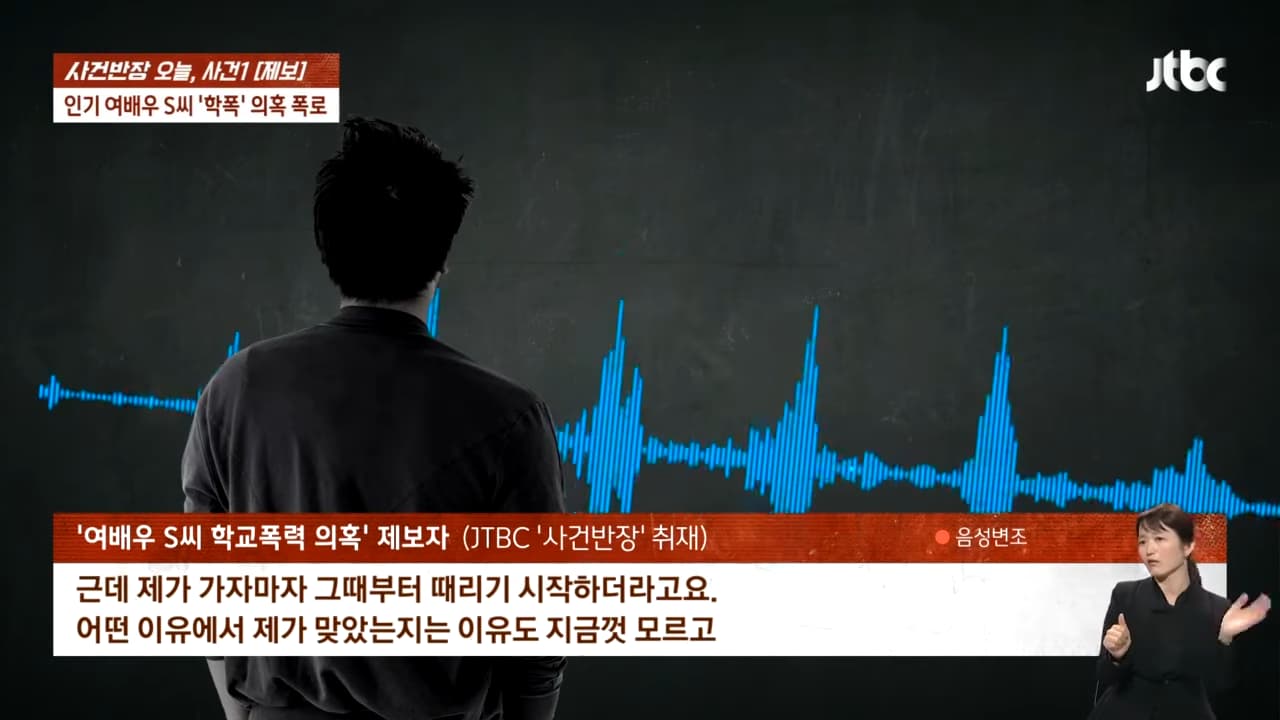 這位舉報人高中畢業後移民美國,時隔近 20 年才得知 S 某成了演員,在 YouTube 看到她在人氣電視劇飾演反派。然而,受傷的心靈沒有隨時間癒合,他馬上聯繫 S 某所屬社,希望得到對方道歉,所屬社卻表示,S 某現在海外聯繫不上,更希望他來韓國弄清事實。舉報人最終讓失去耐心向媒體公開事件,同時提供了對話證據,S 某當年男友也承認她做錯,JTBC 求證所屬社得到回應,演員「完全不記得」此事。
