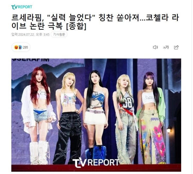 緊接著《tvreport》今日發表了一篇「稱讚 LE SSERAFIM 實力提高了,克服科切拉 Live 演唱爭議」為標題的文章,表示 LE SSERAFIM 以大幅提高的實力吸引觀眾,並引用網友留言,大家對 Live 表演反應非常熱烈、讚不絕口。