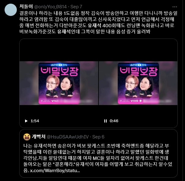 還誹謗過去劉在錫與好友宋恩伊的直播時,提到她開公司後負債累累,勸她不要做這些(Podcast)沒用的,趕緊找人嫁吧,這則留言也吸引超過 7,800 次轉發。後來被其他網友打臉,劉在錫根本沒有說過這樣的話。