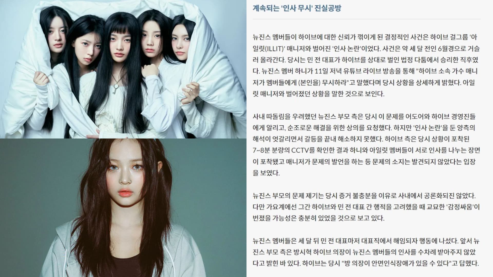 根據報導,這場與經紀人展開的「問候爭議」,要追溯到大約三個月前的 6 月份,當時是閔熙珍贏得 HYBE 訴訟後,事件似乎是指女團 ILLIT 經紀人。