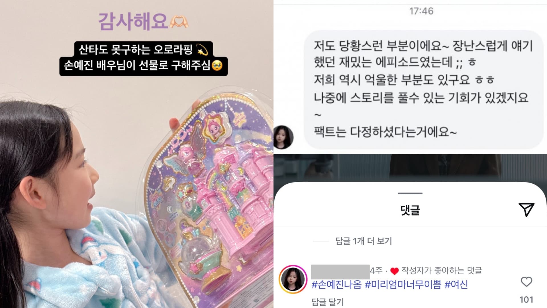 童星崔素律的母親則於 24 日親自澄清,「這件事對我來說也有點突然。那本來只是個開玩笑般有趣的小插曲,但現在變得有些委屈。我想以後應該會有機會把整個故事講清楚。事實是,她(孫藝真)對孩子一直都很親切」。她還透露,孫藝真曾送女兒難買的「Aurora Ping」玩具作為聖誕禮物,她更分享被孫藝真要電話號碼的小插曲。此外,她也經常在孫藝真的 IG 留言支持,可見彼此互動親近。
