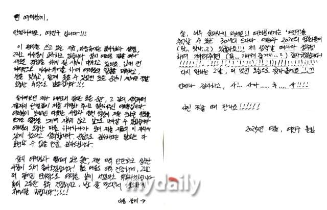 他也向粉絲表達深深感謝,並承諾:「雖然要暫時離開,但我會以更堅強、更成熟的模樣回來。身心都會變得更健康,還會以更深厚的演技再次站在大家面前」。他貼心叮嚀粉絲:「希望大家都能保持健康、好好吃飯、幸福生活」。