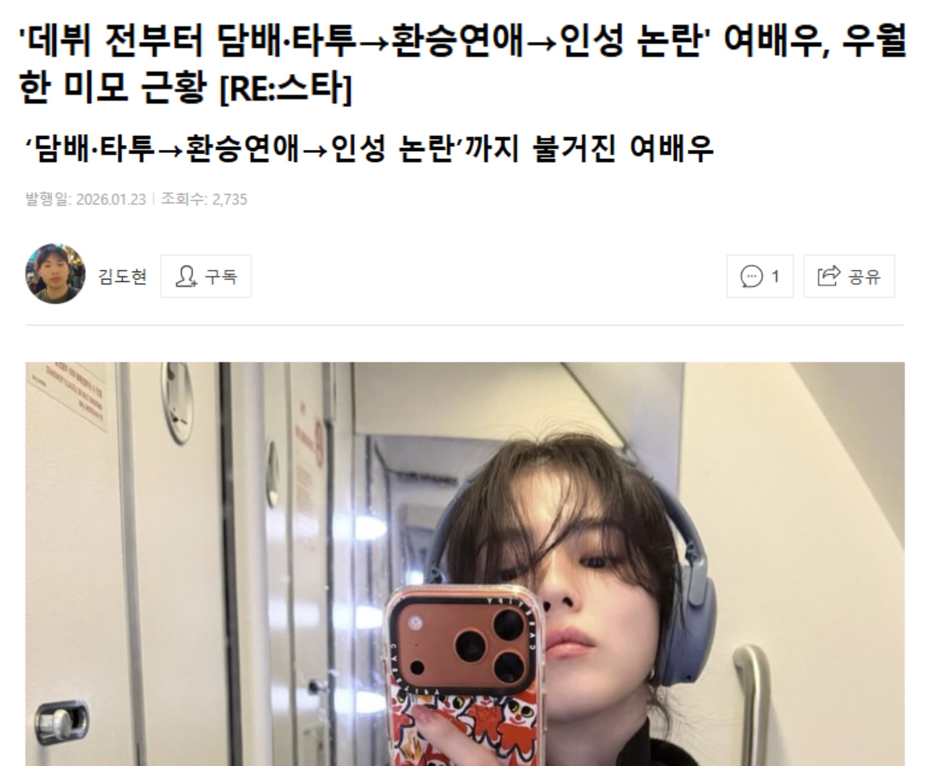 之後用一大半篇幅講述過往爭議,提及前(2024)年品牌活動發生的「態度爭議」,當時因情況混亂,她朝某處喊出「請安靜一點!」的畫面被拍下,引發外界質疑她態度高傲;與演員柳俊烈公開戀情被懷疑「換乘戀愛」;還有「出道前抽菸、刺青」等爭議話題一度被貼上叛逆標籤,如今把刺青全數清除後,連氣質都大轉變。(注:原文可能有修改)