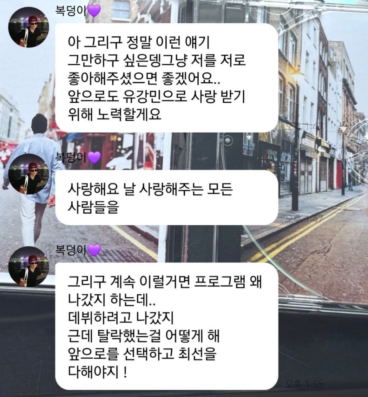 似乎在衍生組合消息公開後,大批粉絲湧入柳岡旻粉絲社群詢問意願,他特意發文吐露內心感受。他坦言,對於外界反覆出現的某些說法感到疲憊,並直言「真的不想再聽到這樣的話」,希望大家能單純喜歡他本人就好,以後也會為了能以「柳岡旻」的身份繼續被大家喜愛而努力的。