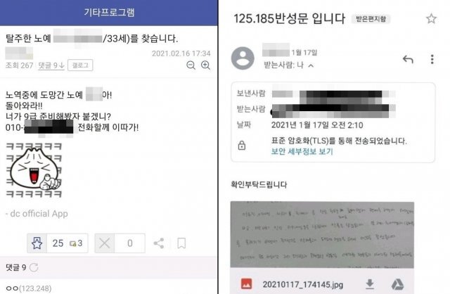 因無法忍受「奴隸房」而逃跑的受害者,被散布姓名、年齡、電話號碼等信息或收到要向警方起訴的威脅,不得不寫「反省文」。在線上社群上傳了被稱為「逃亡者奴隸」、散布受害者真實身份的帖子。部分網民還跟著A某一起參與了對受害者的嘲弄、散播個人信息等加害行為。