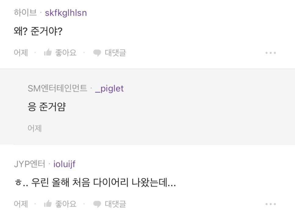對此,在同一職業工作的其他經紀公司的職員們表現出了羨慕之情,JYP Ent. 公司的一名職員說:「我們今年第一次發行日記……並附上羨慕的留言,引得現場笑聲一片。