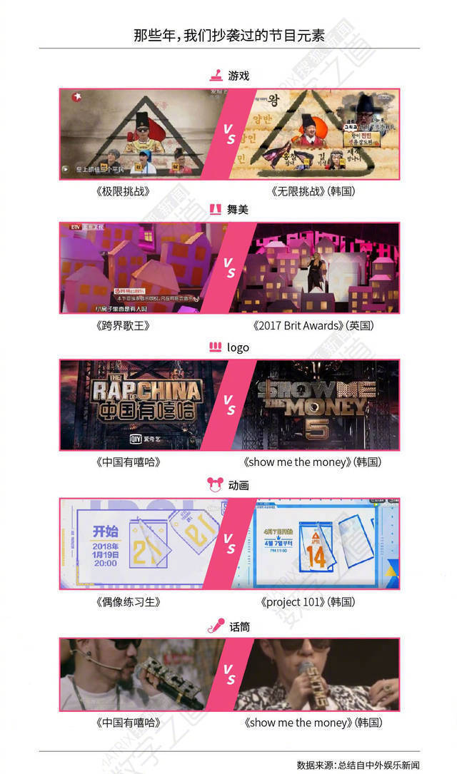 過去中國的節目一直為人詬病,中國創作者被批評缺乏創意,本著誰紅抄誰的原則。當中以韓國最為嚴重,令當地製作公司找韓國外交部吐苦,希望他們出面要求中國政府尊重版權。當然情況依舊是沒有得到改善。