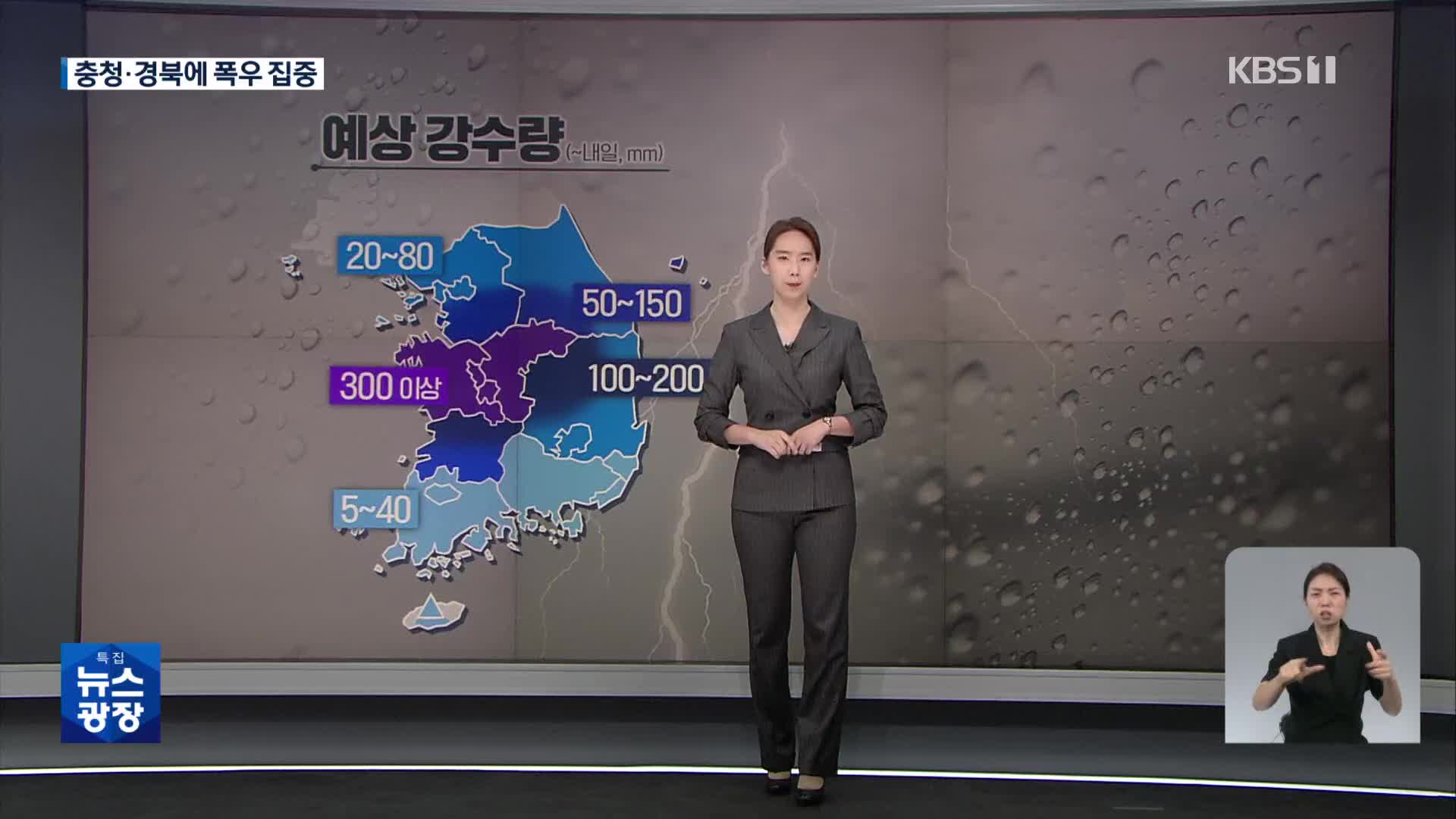 雖然這是自氣象觀測以來降雨量最多的一次,但預計到 11 日爲止,首都圈等中部地區最多還將出現 350 毫米的降雨量,因此,有可能出現新的災害。 據氣象廳當天透露,前一天首都圈集中降下的雨將逐漸擴大到忠清圈和全北、慶北北部。 10 日白天到 11 日上午之間,以忠清圈和全北北部爲中心將出現強降雨,首都圈將暫時進入平穩狀態。