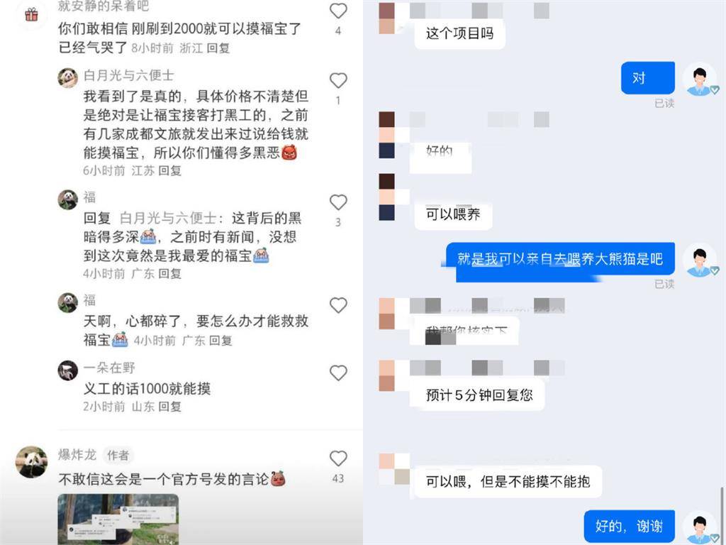 近日在中國網路社群瘋傳多張福寶在非展示區的高清照,隨後被爆出園區利用福寶「接客」,據傳只要花費人民幣 2,000 元,就可以近距離撫摸福寶,當地民宿業者也在直播時自爆投餵過福寶。