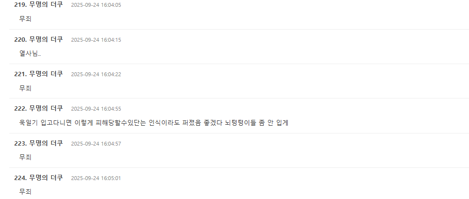 「雖然動手打人不是對的,但如果是因為喝醉後看到旭日旗而火大,那還真算是愛國者了」、「應該只是手不小心碰到一下吧,無罪ㅋㅋ」、「台灣人,你還是去多學點歷史吧。旭日旗都不懂嗎?你們國家也曾是日本殖民地啊,看來你們那邊的歷史教育也教得挺隨便的。你自己喜歡日本,或是你們國家對日本抱有好感,那跟旭日旗有什麼關係?在受害者面前穿那種東西,不就等於是在說『來打我吧』嗎?」、「是旭日旗沒錯吧?愚蠢地穿旭日旗的話,就應該被打」、「對於酒後暴力的人來說,任何事都是藉口。當然討厭旭日旗沒錯,但那不是打人的理由」、「真的有很多留言不正常的人呢;;;喝醉了打人的傢伙,難道會是在非常清醒又正義的精神下實施暴力嗎…」、「跑去別人國家打在地人,還有人在那邊喊什麼無罪,傻眼。這裡的三觀真的有夠崩」。