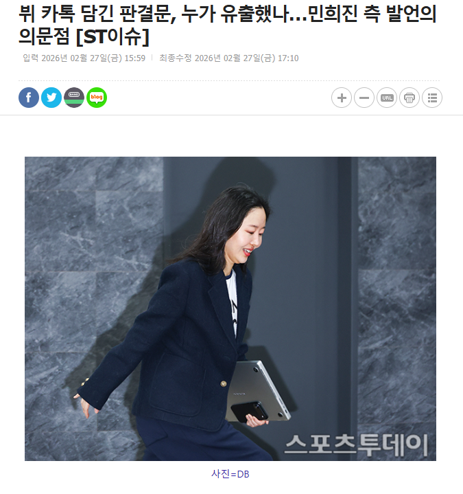 在 27 日凌晨流出的內容,包含「閔熙珍與 V 的對話」被採納的證據,正如大家所見,所有人物身分均用代號匿名處理。韓媒《今日體育》報導題為「V 的 KakaoTalk 對話被寫入判決書,到底是誰外流的?……圍繞閔熙珍方面發言的疑點」,也是目前唯一一篇相關報導。至於報導是否偏頗則交由各位自行定奪。