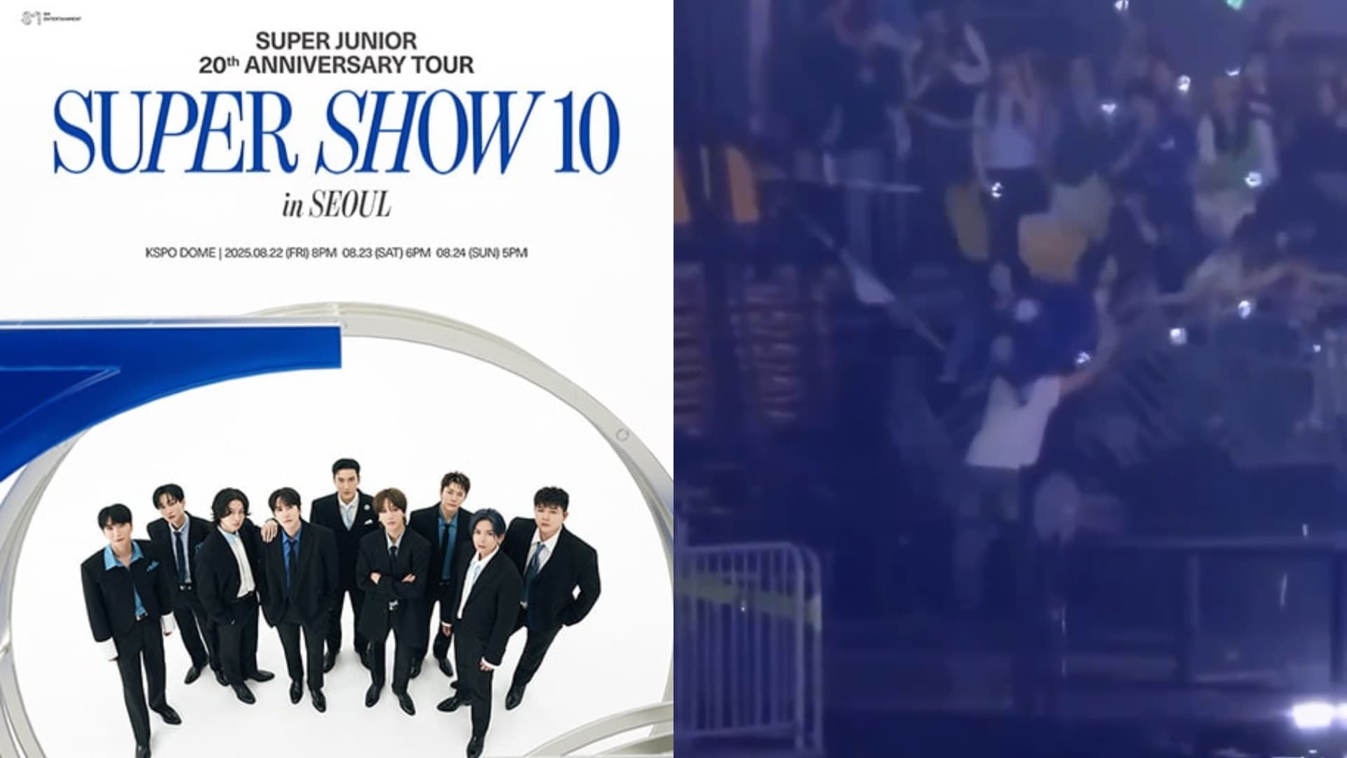 Super Junior 昨(4)晚在首爾 KSPO DOME 舉行出道 20 週年巡演安可最終場,未料演出進行至安可最後一首歌曲時,一樓觀眾席側邊設置的安全圍欄突然倒塌,造成 3 名觀眾從高處跌落受傷。當時靠近與粉絲互動的厲旭被突如其來的事故嚇倒,回過神來隨後衝下台尋找工作人員救援。所屬社 SM 娛樂也發聲明回應粉絲傷勢。