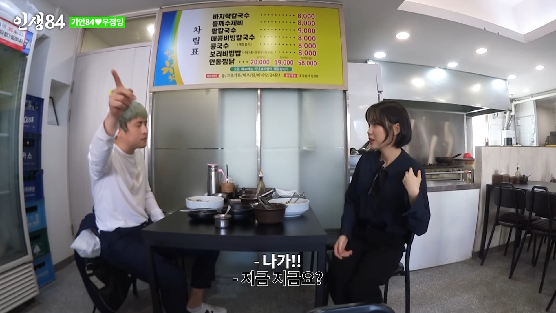 但是當看到旗安84還穿着最初見面時沾滿拉麵污垢的衣服出來後,禹正英生氣地離開,兩人的情景劇也就此結束。