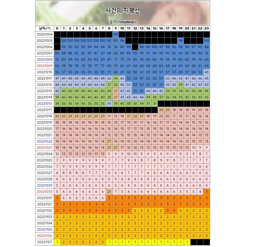 實力派歌手 YOUNHA 唱過不少膾炙人口歌曲,如《密碼486》、《雨傘》、《今天分手了》等。在今年 3 月 30 日發行的正規 6 輯再版專輯《END THEORY : Final Edition》,主打歌《事件的地平線》憑藉好口碑,相隔 222 天再度衝上 MELON TOP 100 一位,成為 2022 年「逆襲主角」。