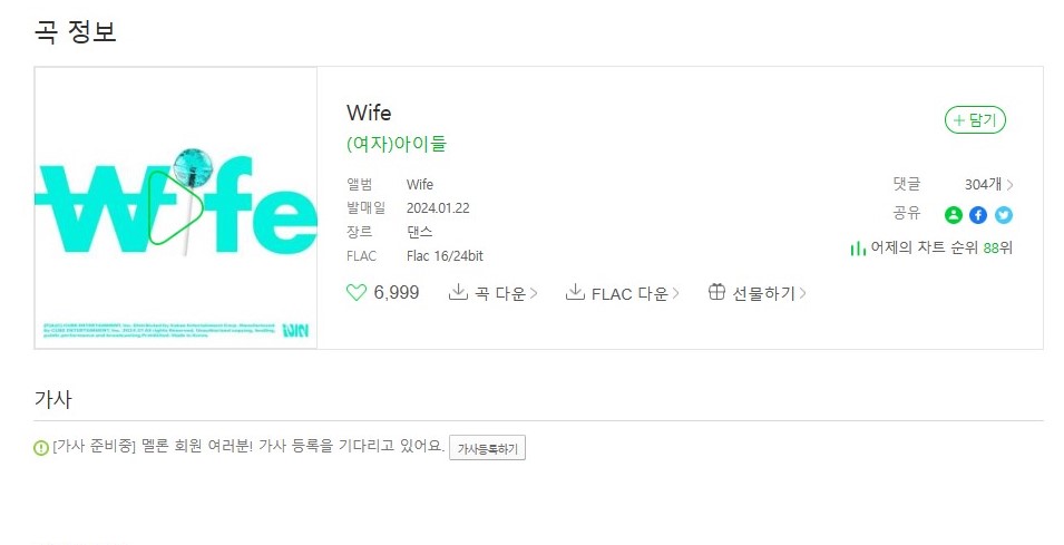 (G)I-DLE 先行曲〈Wife〉由隊長田小娟單獨作詞,參與作曲和編曲,外界圍繞 19 禁歌詞爭議持續,KBS 今(24)日公開歌曲審議結果,針對 (G)I-DLE〈Wife〉,以歌詞過於煽情爲由,做出不適合放送的判斷。據悉,(G)I-DLE 所屬社也意識到爭議,並未在 MELON、GENIE 等韓國主流音源平台上架歌詞。