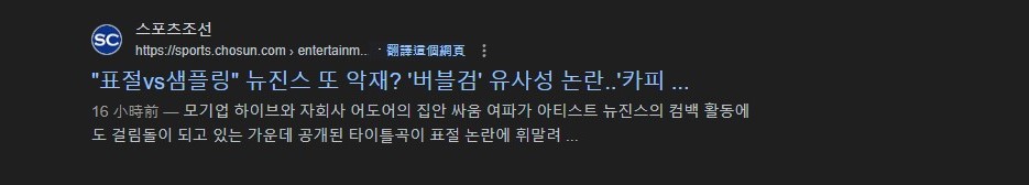 閔熙珍此前控訴 ILLIT 就是 NewJeans 的複製品,批評 HYBE 縱容廠牌之間抄襲,陸續有網友 PO 出兩團相似點,輿論風向瞬間大逆轉。儘管 HYBE 輿論戰徹底告敗,但近日有韓媒指出 NewJeans 新曲〈Bubble Gum〉涉嫌抄襲,閔熙珍是惡人先告狀,沒想到馬上被韓網打臉,相關報導也隨即移除。