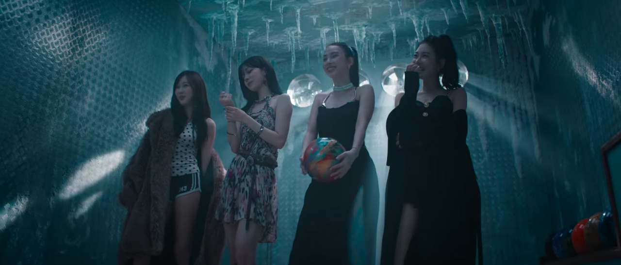 〈I am a Rich Man〉預告片的場景設置在一輛行駛於公路上的冷凍貨車,車廂內竟隱藏著一座保齡球館。aespa 四名成員與具敎煥在冰冷詭譎的空間中陸續現身,具敎煥一度誤以為自己遭到綁架,甚至被成員們用保齡球攻擊,逐漸陷入寒冷與恐懼的崩潰狀態。相較之下,aespa 的冷靜與神秘感形成強烈反差,整支影片時而緊張、時而搞笑,氛圍就像犯罪片混搭黑色喜劇!