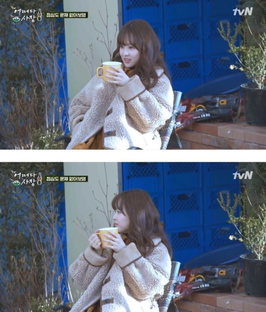 當時,朴寶英在節目中化身打工生,還反過來教導「社長」,度過了愉快的時間。 之後拿着咖啡到外面喝了咖啡,馬克杯的大小一下子奪走了視線。 正是因爲朴寶英的臉太小,所以馬克杯看起來特別大。