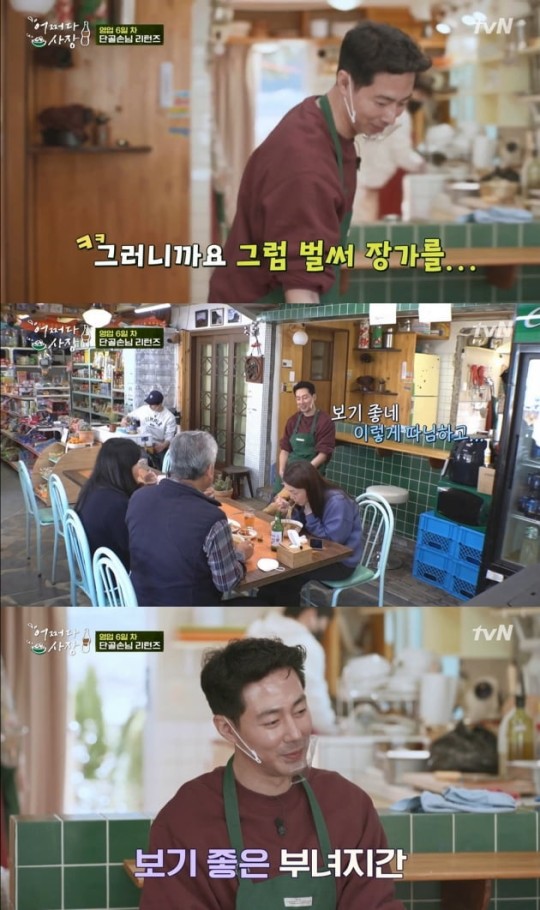 在第二天進行的第6天營業中,趙寅成的結婚問題依然是熱門提問。 和兩個女兒一起來到超市的一位客人一邊品嚐趙寅成煮的拉面一邊感嘆。 他還惋惜地說:「在家這樣工作,一定會得到好的媳婦的。」 對此,趙寅成表示:「如果那樣的話,早就結婚了。」在廚房聽到這句話的車太鉉好像同意了似的大笑起來。