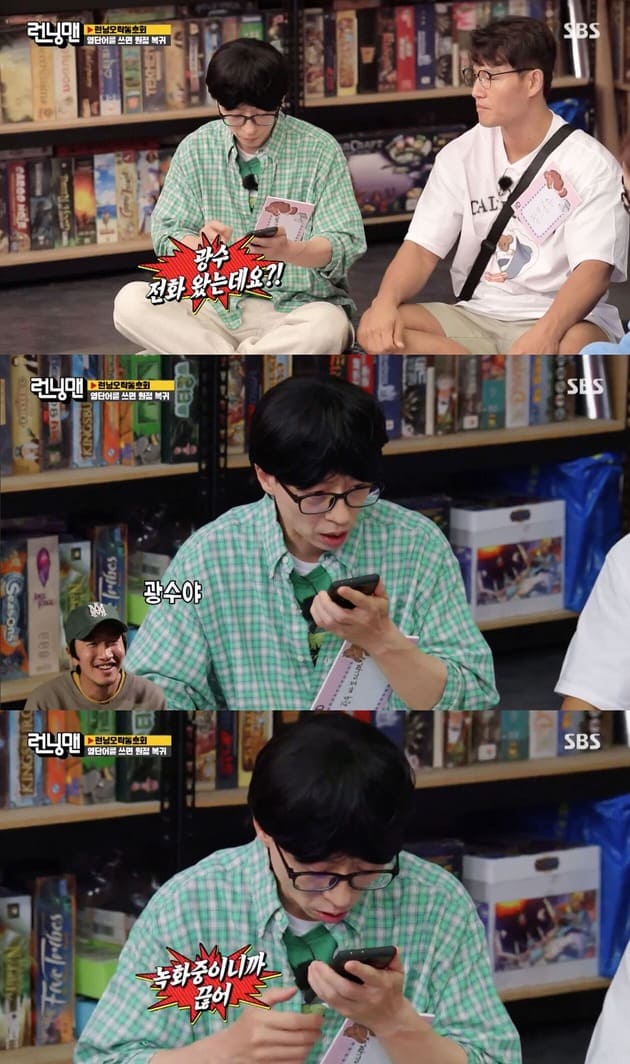 自上週李光洙正式從出演 11 年的《Running Man》下車,20 日播出的新一集中,展開了「Running娛樂同樂會競賽」。在當天節目進行到一半時,這時劉在錫說「光洙來電話了。」