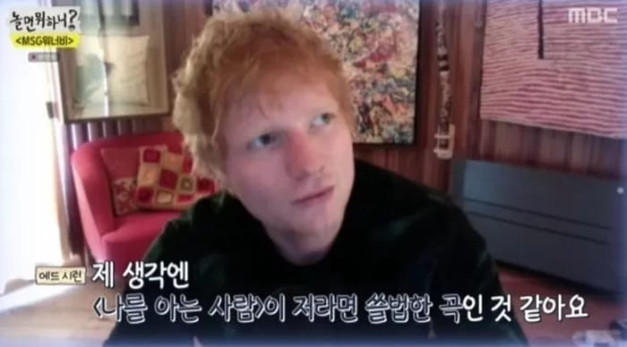 在 10 日播出的MBC《玩什麼好呢》中,世界流行歌手 Ed Sheeran 驚喜現身,通過影片信向 MSG Wannabe 問好。