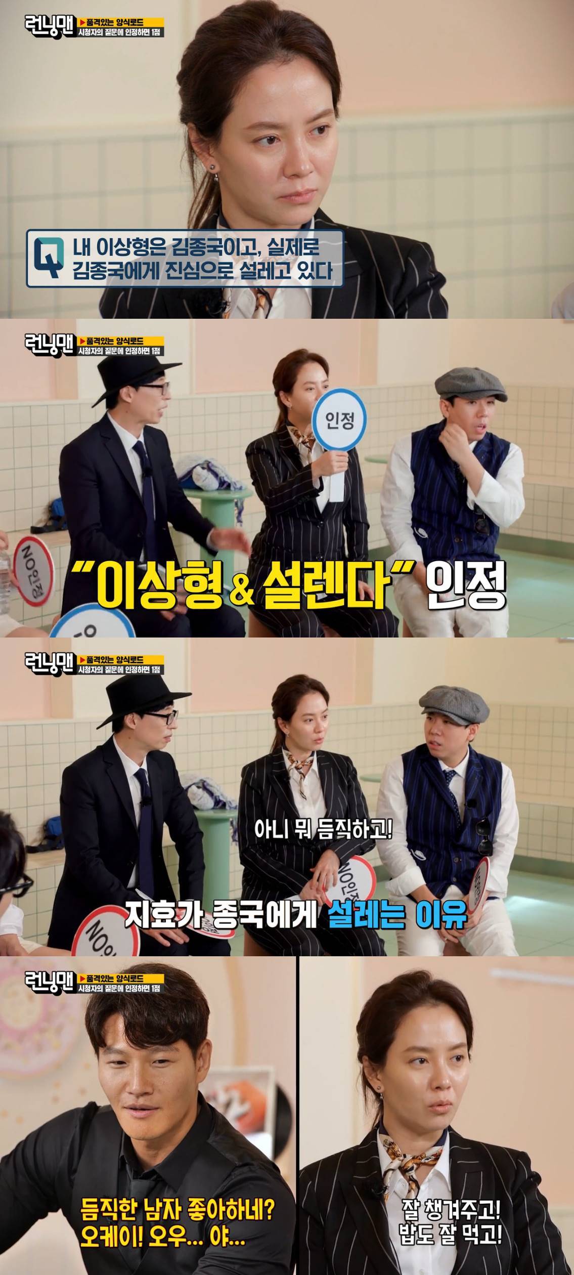 宋智孝則被問到「我的理想型是金鍾國,實際上對金鍾國是真的心動」。 宋智孝回答說「認證」。 聽到宋智孝的話,金鍾國一直問「對什麼方面心動呢」,表現出了極大的關心。
