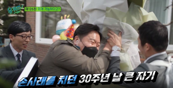 劉在錫聽到後說:「爲什麼那天沒有錄製。 20 週年誰都不知道嗎?」 曹世鎬失望地說:「那天沒錄製,誰也不知道」,「今天剛來錄製節目,就小心翼翼地尋找是否有(祝賀用的)氣球,但什麼都沒有。 本想結束的時候再做的。」
