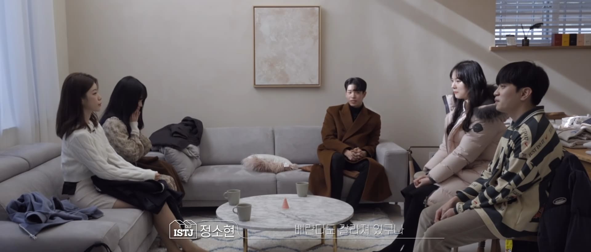 首集開篇,節目組就直接將「外向(E)」和「內向(I)」的素人安排住進兩間不同的房間。果然,兩個房間簡直產生了極與極的差別。雖然大家都是第一次見面,但 E 型的房間就像朋友聚會,除了自我介紹,還表演個人技,無所不談,氣氛相當火熱。