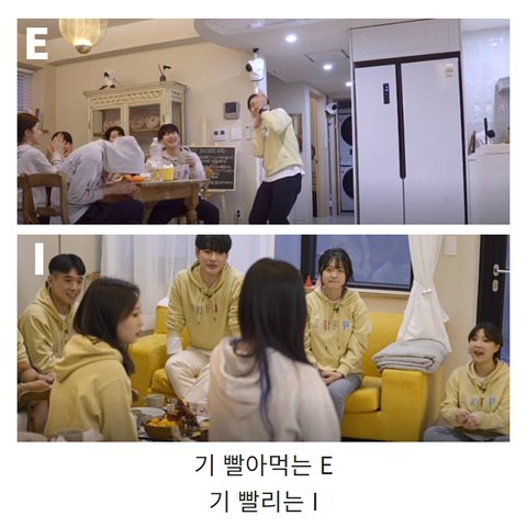 相反,I 型人格相對冷靜,對話都是一句起,兩句止,也有人表示想回家。如果將兩個對比,E 型 8 個人都會時常聚在一起聊天遊戲,但 I 型欺生性格,從畫面上很少見到 8 人齊聚場面。