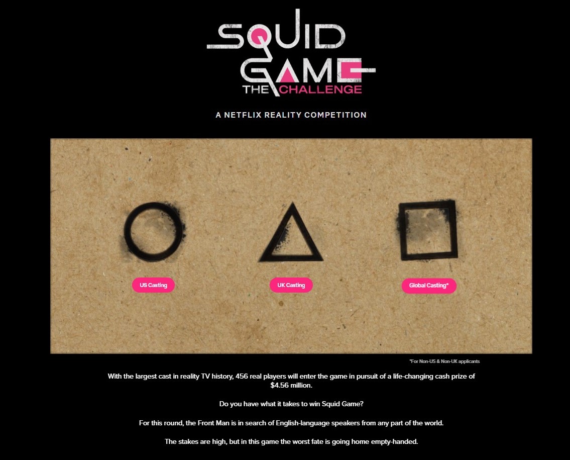 《魷魚遊戲:The Challenge》預計會有 10 集,Netflix 已經創立了官網讓全世界民眾都可以報名,唯一條件就是參賽者必須會講英文,官方最後更說:「賭注非常高,最糟糕的是參加完比賽後空手而歸。」