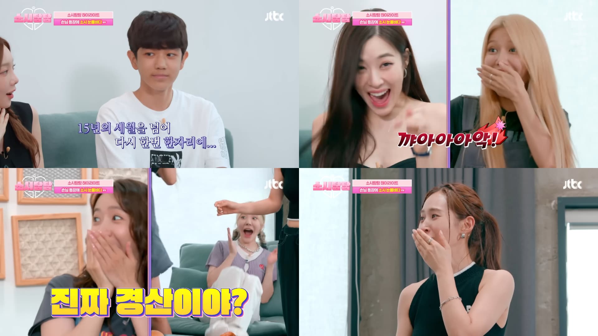 少女時代團綜《少時貪探》最新一集真的充滿淚水和笑聲,製作組找來她們在 2009 年《Hello Baby》中照顧的小寶寶「景山」,安排「媽媽」少時和寶寶相隔 13 年重逢,一見面現場成員們全都眼眶泛紅,怎料第一位登場後,接二連三出現自稱「景山」的少年,讓少女時代瞬間收起將要爆發的眼淚。