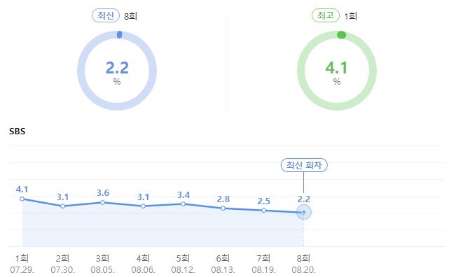 有看到收視率趨勢的網友們紛紛留言「在韓國,日劇感性似乎行不通」、「想起金世正前作角色」、「還剩 8 集,馬上要 1% 了」、「個人覺得很有趣」、「硬要改成網絡漫畫,內容改編也很奇怪」、「首先演員們的演技有問題,真的不擅長」、「世正下次以好的作品見面吧」、「改編得太差了,男主女主的演技令人肉麻,無法直視」。